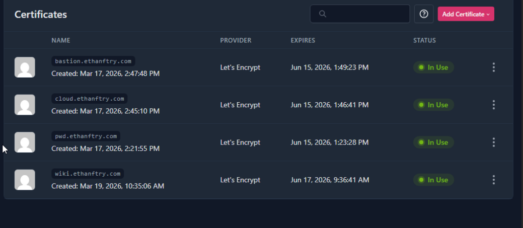 Mise en place de certificat HTTPS sur chaque application publiée :